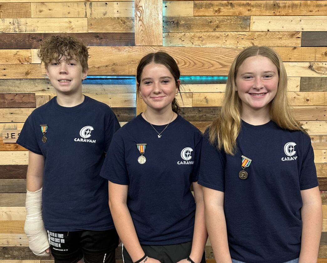 LaCroft Church of the Nazarene’s Caravan program, which is a youth ministry scouting group, recently had three participants receive the highest award in the program, The Phineas F Bresee. Pictured with their awards (from left) are Mason Butler, Allison Roberts and Leigh Ann Warrick. Any youth ages 4 years old through sixth grade are welcome. The group meets every Wednesday from 7 to 8 p.m. (Submitted photo)