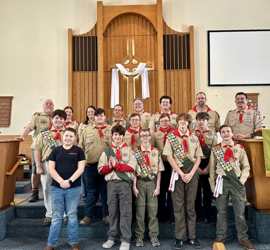 Boy Scout Troop 2012 recently participated in Scout Sunday at Long’s Run Trinity Presbyterian Church. (Submitted photo)