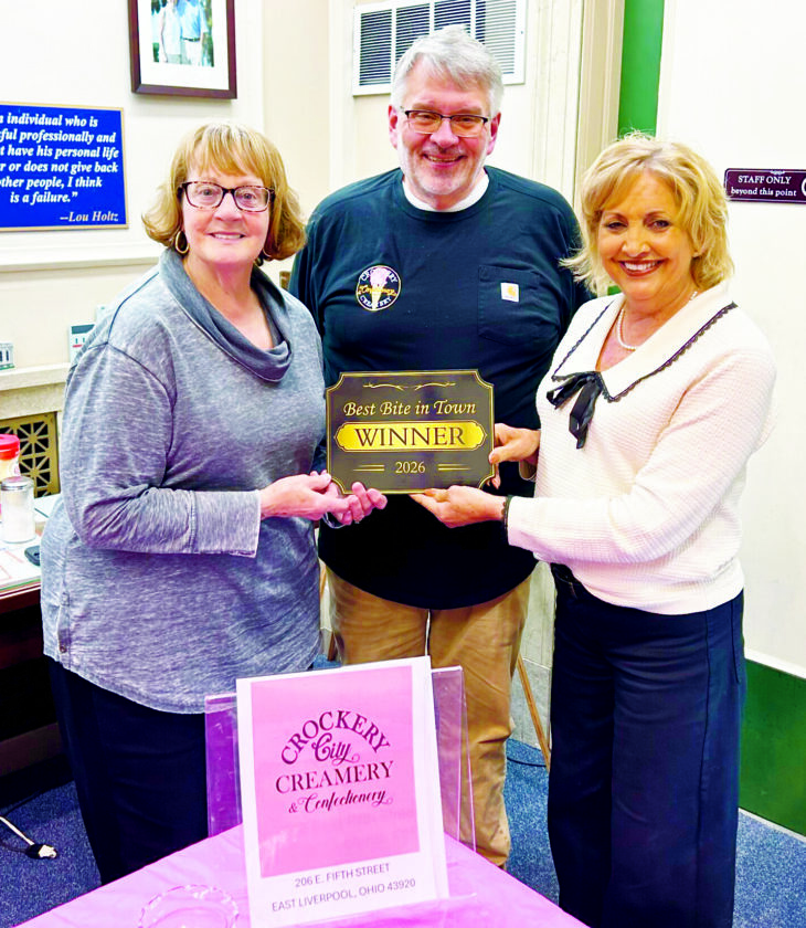 On March 21, the Upper Ohio Valley Museum and Learning Center conducted its first Best Bite in Town Competition. The winner was Crockery City Creamery. Pictured are owners, Mary Beth and Bill Jones, and museum director Michelle Roberts. The museum thanks all of the businesses and attendees for helping to make this a successful fundraiser for the museum. (Submitted photo)