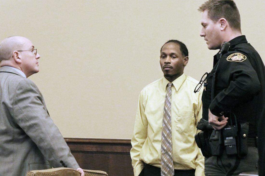 Rubin “Red” Williams waits as the jurors leave with his defense attorney Paul Conn (left) and Deputy Brandon Brown after learning the jury found him guilty of involuntary manslaughter and drug trafficking. (Photo by Deanne Johnson)