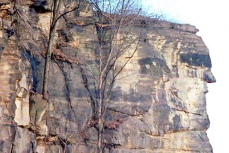 The Indian Head (aka Chief Logan) rock emerged a century after his death, when a quarry operations cut away some stone in the hillside and caused a rock formation appearing like a profile of a man.