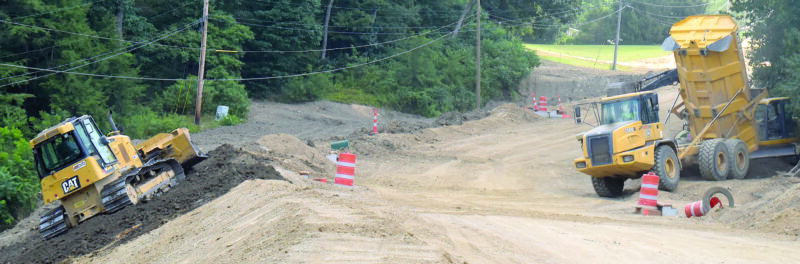 Workers continue the realignment of Calcutta-Smith Ferry Road Thursday afternoon. The road has been closed since May while the road is realigned approximately .35 miles east from East Liverpool Road. Work is expected to end in December. (Photo by Ron Firth)