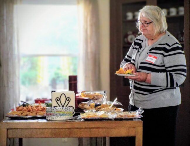 Mary Spooner, member of the Columbiana County Seniors, fixes a plate Sunday afternoon during the group’s open house at its new club house, 145 S. Vine St. in Columbiana. (Photos by Stephanie Ujhelyi)