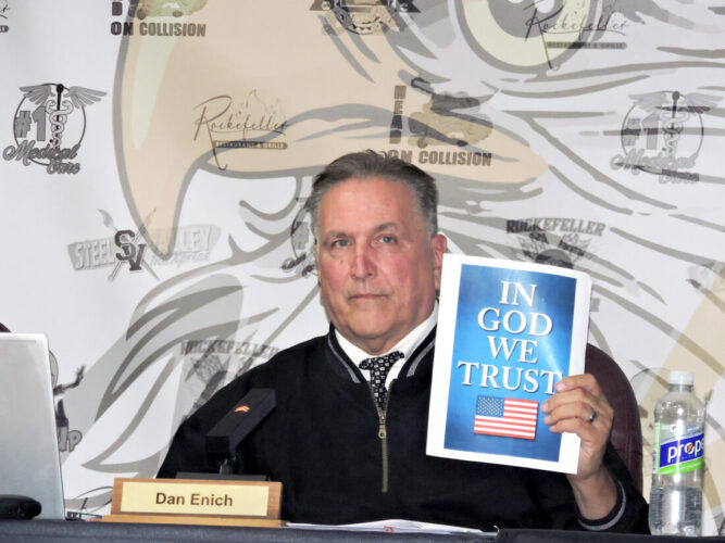 NEW CUMBERLAND — In following a new state code, all buildings within the Hancock County Schools system soon will include signage displaying the words “In God We Trust.”