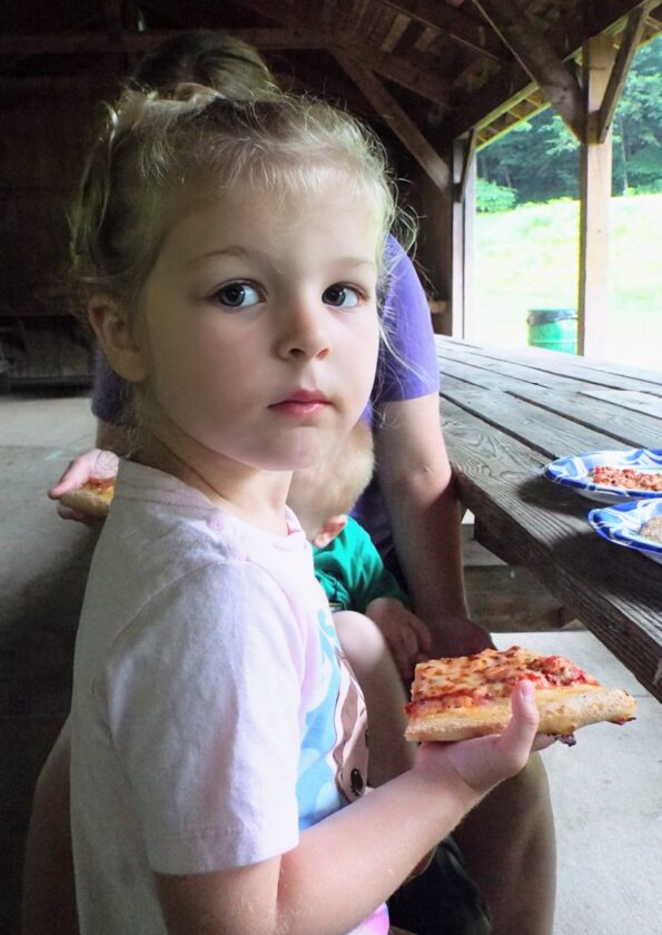 Blair Beatty, 3, of New Cumberland prepares to enjoy a slice of pizza. (Photo by Stephanie Ujhelyi)