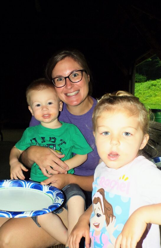 Stephanie Beatty of New Cumberland holds 2-year-old James while sitting next to 3-year-old Blair. (Photo by Stephanie Ujhelyi)