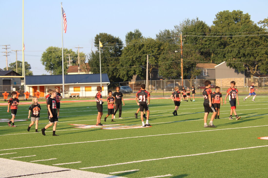 - The Wellsville Junior Tiger football team practices on the field during the event. (Photo by Kristi R. Garabrandt)