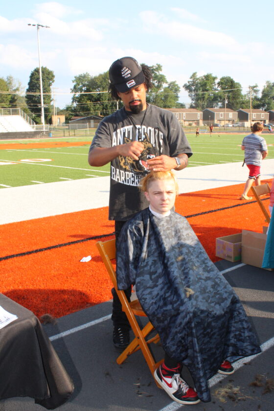 - Priceten Garwood, 15, receives a free haircut from Isaiah Greathouse. (Photo by Kristi R. Garabrandt)