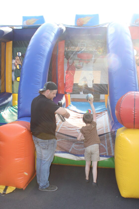 - Father and son Josh and Jaxton, 5, Reed enjoy a moment shooting mini basketball together at one of the inflatables. (Photo by Kristi R. Garabrandt)