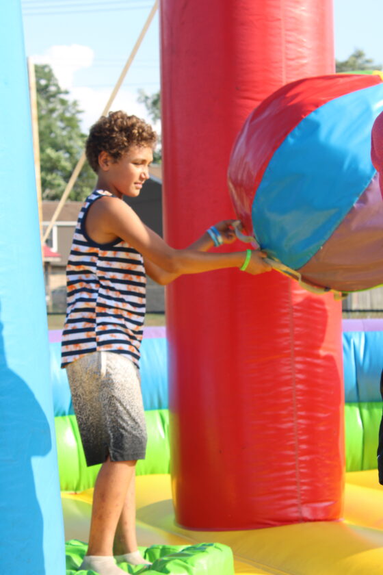 - Issac Davis, 10, enjoys the bounce house at the Wellsville Back to School Bash. (Photo by Kristi R. Garabrandt)