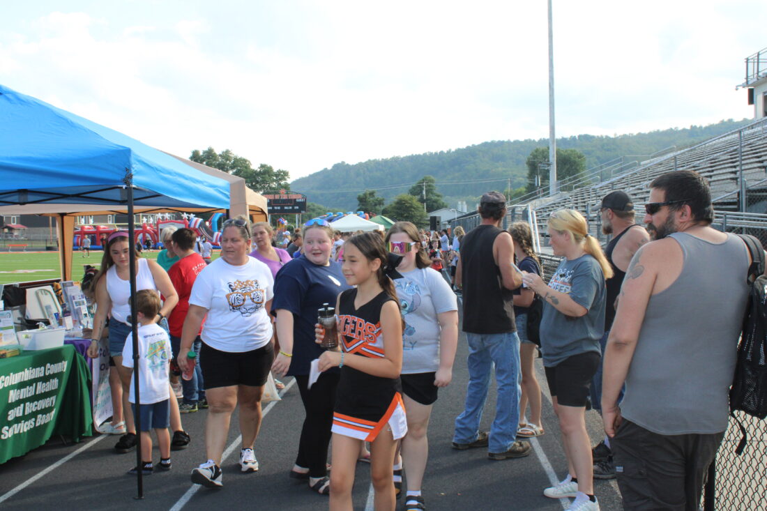 The Wellsville community celebrated its annual Back to School Bash Thursday night. Wellsville Village Schools staff and community organizations line the track at Don Nicholson Stadium to hand out back to school goods and information to families. (Photo by Kristi R. Garabrandt)