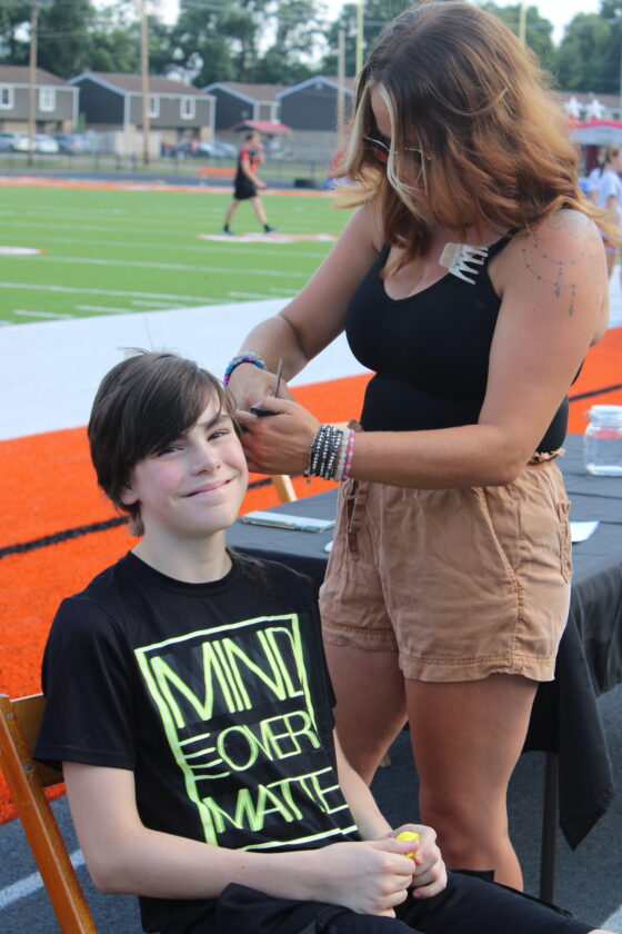 - Mason Chadwick, 11, receives a free haircut from Shayne Beagle of Bombshell Beauty Salon. (Photo by Kristi R. Garabrandt)