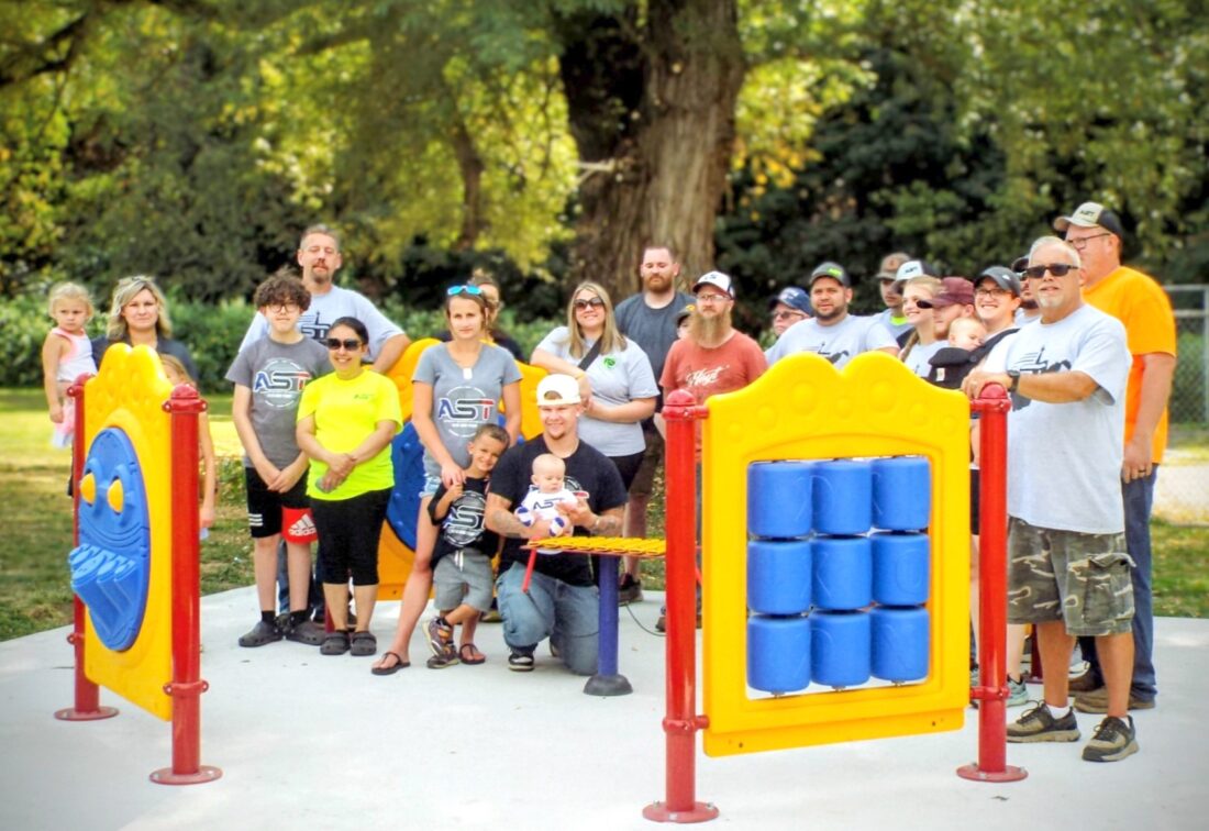 Between the AST work crews, their families and representatives from fellow contributors like Shell Lubricants and the Hancock County Family Support Center (FSC), which joined them for a picnic lawn and a group photo to memorialize completion of the project, several dozen people of all ages were in attendance.