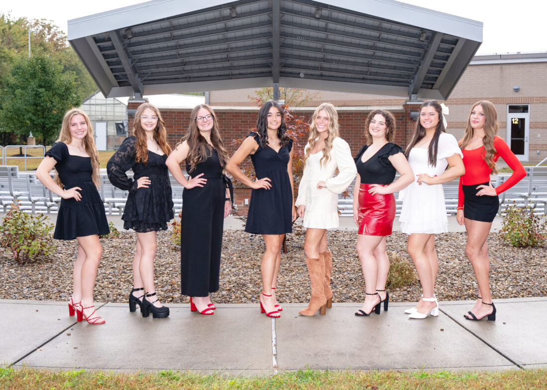The Beaver Local 2025 Fall Homecoming Court will be honored at the home football game vs. Youngstown East on Friday at 6:30 p.m. The Red Pride band boosters and band council will host the dance at the school on Saturday evening from 7-9 p.m. The court members, from left, are junior attendant, Hadley Johnston, senior candidates for Queen, Kacey Dickey, Hayden Higgins, Isabella McLevey, Perri Gilson and Brenna Cunningham, sophomore attendant, Calleigh Eells and freshman attendant Braylee Gilson. (Submitted photo)