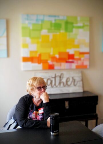 Lorrie Lanzendorfer, of Leetonia, sits in the game room of the clubhouse.