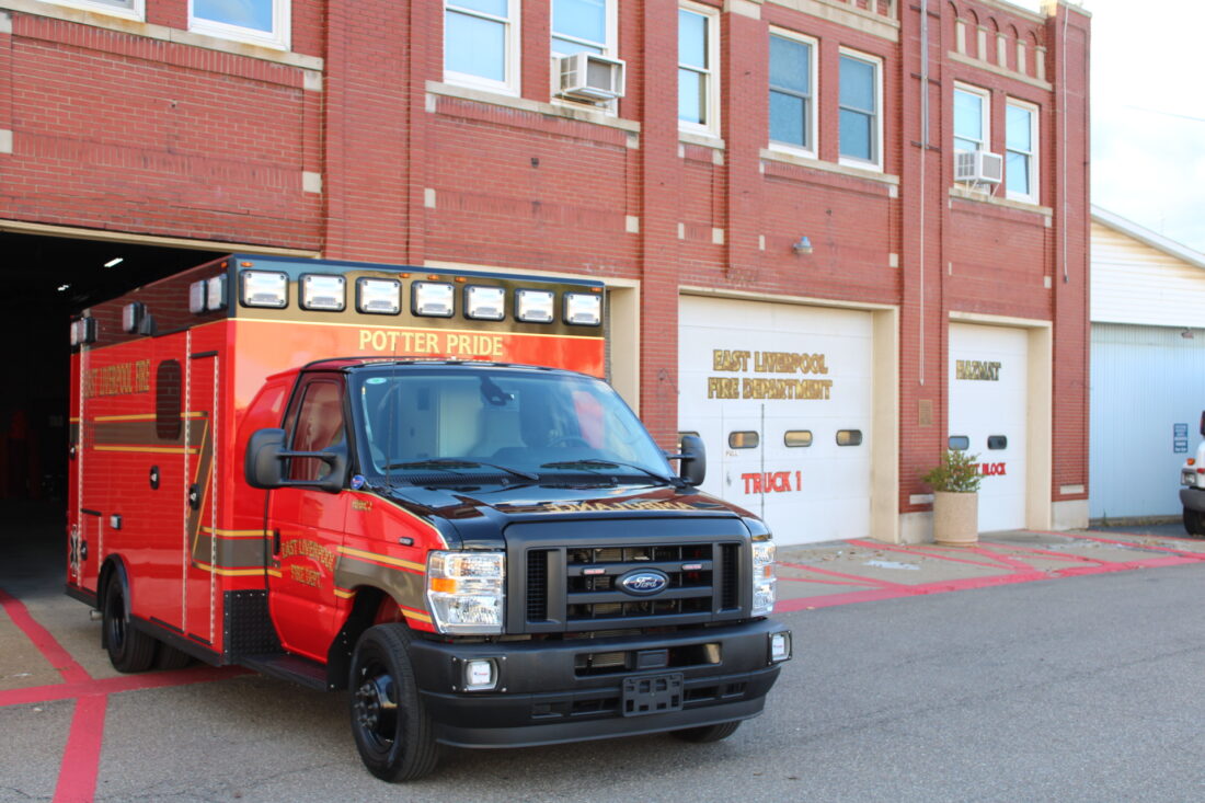 Medic 2, East Liverpool Fire Department’s new ambulance, arrived at the station early Thursday afternoon. (Photo by Kristi R. Garabrandt)