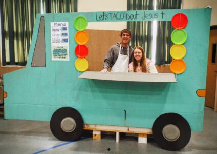 - Clay and Sydney Dotson, members of Northside Community Church in East Liverpool, man their faux food truck entitled “Let’s Taco About Jesus” during Saturday’s church fall festival. The event also include other trunk ’n’ treat tables and games like a hulu hoop pumpkin toss.