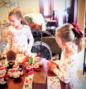 Presley Blasdel, 9, and Raegan Blasdel, 6, work on gingerbread houses Sunday afternoon during a class at Willows by Wehr in Columbiana for the city’s upcoming Joy For Christmas celebration. The girls are the daughters of State Rep. Monica Robb Blasdel. (Photo by Stephanie Ujhelyi)