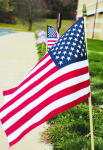 An American Flags placed to honor veterans on Veterans Day blew in the wind outside Wellsville Jr. Sr. High School. (Photo by Kristi R. Garabrandt)