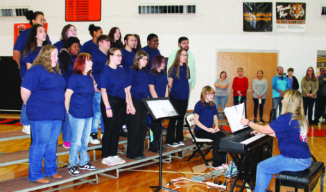 The Wellsville Combined High School Choir performs the “Star Spangled Banner” at the school’s Veterans Day program. (Photo by Kristi R. Garabrandt)