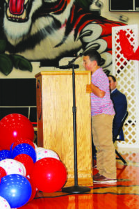 Veteran/Prosecutor Vito Abruzzino, US Air Force J.A.G. Corps, encourages students to thank veterans by living their best lives and veterans to share their stories and experiences during the Wellsville School’s Veterans Day program. (Photo by Kristi R. Garabrandt)