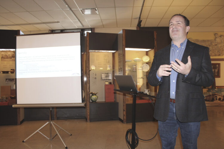 Drew Cooper, East Liverpool Community Partnership for Revitalization, explains the history behind the East Liverpool Heritage Trail and the need to raise funds for it, at a kickoff event held at the Museum of Ceramics. (Photo by Kristi R. Garabrandt)