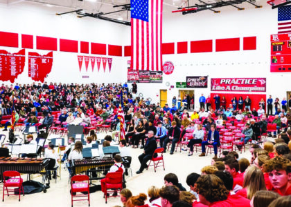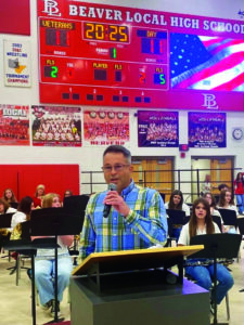 Beaver Local Schools recognized the sacrifices made by service members during its Veterans Day program on Nov. 11. About 1,000 students in grades 5-12 gathered with around 80 veterans as well as family members, school staff and administrators for observance in the high school gym following a breakfast featuring live patriotic music played for the guests. The program was led by the Beaver Local History Club. It featured Beaver Local third grade students, Beaver Local Band and Choir students from both the MS and HS along with guest speaker Major Rich Saphore. (Submitted photo)