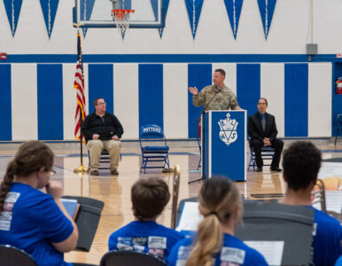 LT Colonel Leonard Sipe (USAF, 1975–2014) speaks to students about leadership, discipline, and the lifelong meaning of military service. He was introduced by his son, Joshua Sipe who leads the East Liverpool Junior Senior High School bands.