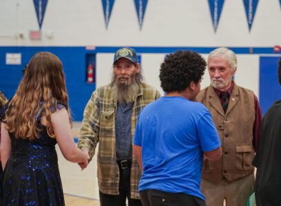 - ELHS Senior and Eagle Scout candidate Elijah Grogg presents the colors with dignity and precision as the Potter Fieldhouse rises in respect for veterans and active-duty service members.