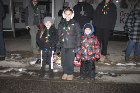 Jaiven Perez, 4; Logan Coney, 8 and Hayden Conley, 6, watch as the 2025 Christmas Parade begins. (Photo by Kristi R. Garabrandt)