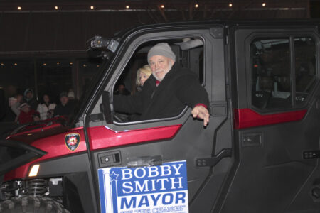 Mayor Bobby Smith and his wife Janie participate in the Christmas parade in the side-by-side vehicle purchased by the fire department through a grant. (Photo by Kristi R. Garabrandt)