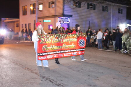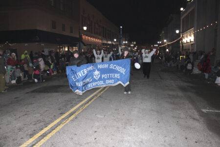 - The East Liverpool High School Marching Band makes their way down the parade route playing a variety of Christmas songs. (Photo by Kristi R. Garabrandt)