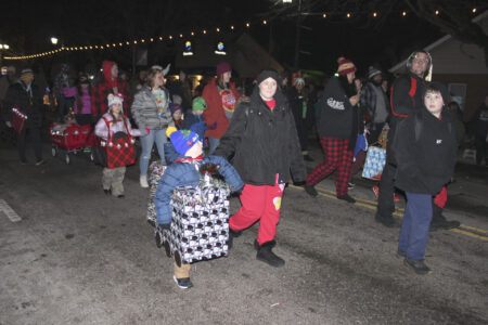 - Head Start families with children dressed in train costumes to go with their Polar Express theme park in the Christmas parade. (Photo by Kristi R. Garabrandt)