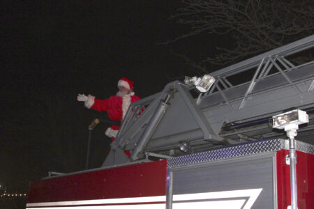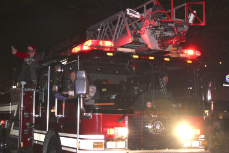 - Santa Claus closed out the 2025 East Liverpool Christmas parade with his arrival on a fire engine driven by the crew of the East Liverpool Fire Department. (Photo by Kristi R. Garabrandt)