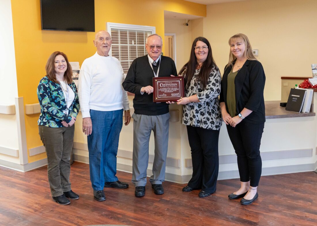 The Columbiana County Board of Developmental Disabilities (CCBDD) recently recognized Covington for its outstanding priority to being an inclusive workplace. CCBDD Superintendent William Devon thanked Covington and presented staff with a plaque in recognition of their continued support.