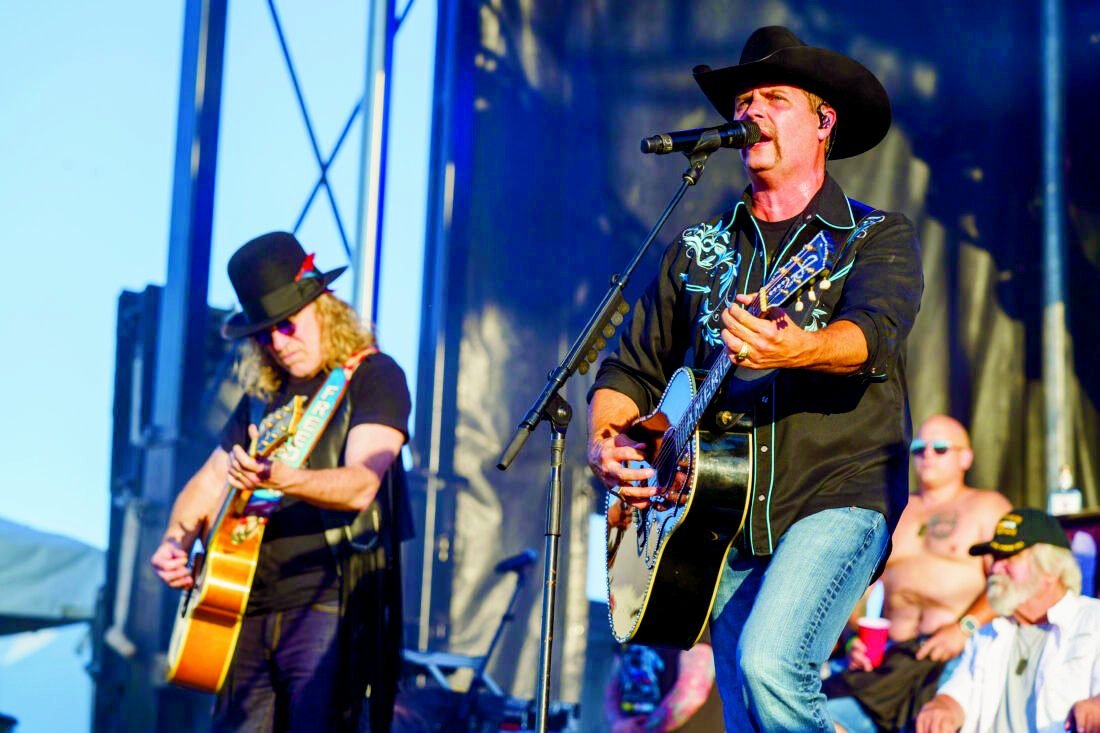 Big Kenny, left, and John Rich, of the band Big & Rich, perform during Patriots Fest on Saturday, May 18, 2024, in Aurora, Ill. (Photo by Rob Grabowski/Invision/AP)