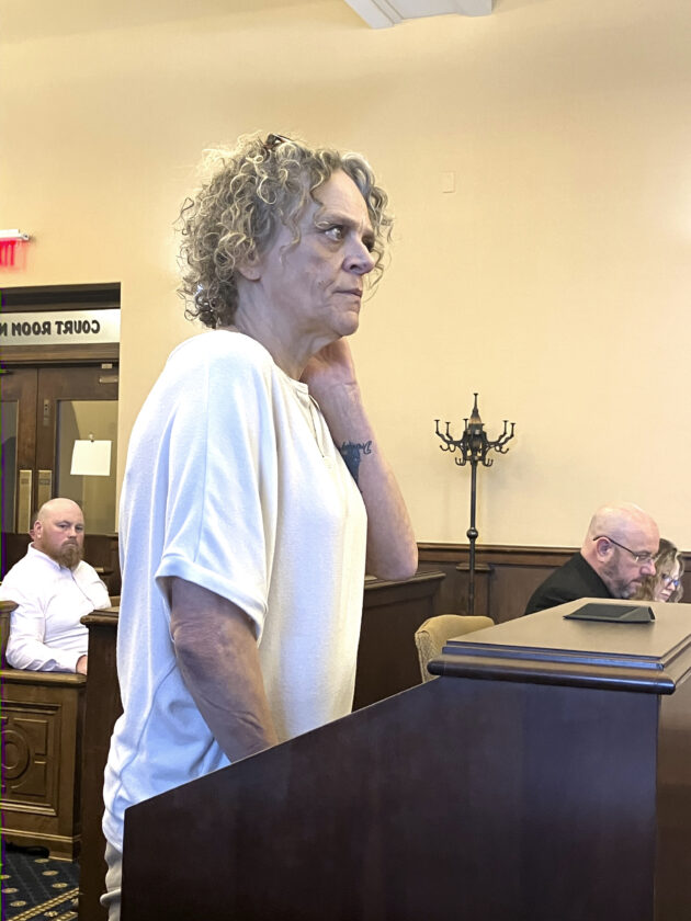 River Valley Organizing founder Amanda Kiger appears for arraignment Thursday in Columbiana County Common Pleas Court on behalf of herself and the nonprofit for aggravated theft and telecommunications fraud. (Photo by Mary Ann Greier)