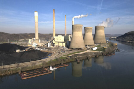 American Electric Power's John Amos coal-fired power plant in Winfield, W.Va., stands across the Kanawha River, Sunday, March 22, 2026. (AP Photo/Carolyn Kaster)