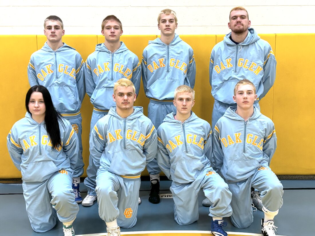 Oak Glen wrestlers who have qualified for the state tournament include (front, from left) Alexandra Watkins, Kayden Spencer, Jordan Tomsic, Kaleb Eckleberry (back) Wyatt Wolanski, Parker Boyce, Paxton Ware and Noah Schmidt. (Submitted Photo)