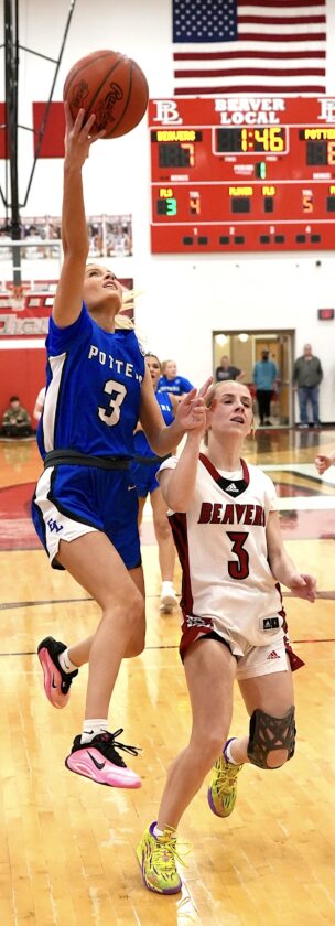 Beaver Local took a 7-6 lead after the opening quarter, but the Potters outscored the Beavers 16-8 in the second quarter, led by Andrews, who tallied 12 of the Potters’ 22 first-half points as the visitors a 22-15 led at intermission.