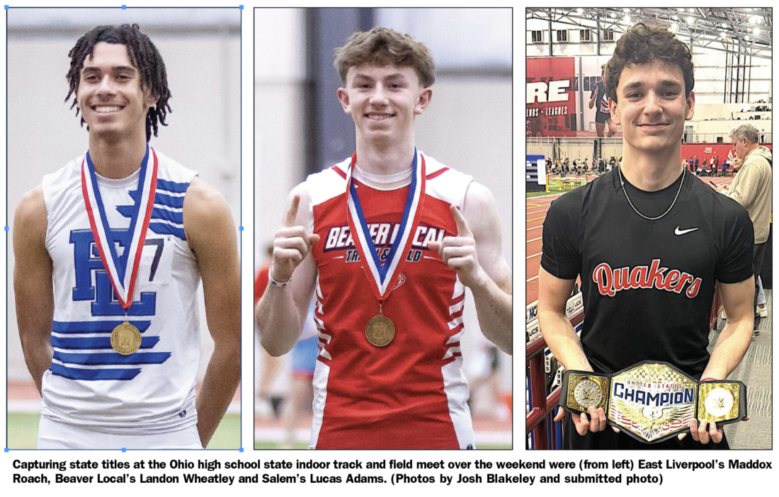 GENEVA, Ohio — Three Columbiana County boys captured state championships at the Ohio Association of Track and Cross Country Coaches Association 2026 indoor high school state track and field meet at the SPIRE Institute on Friday and Saturday.