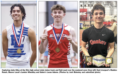 Salem senior Lucas Adams won the Division II long jump, while East Liverpool senior miler Maddox Roach and Beaver Local junior high jumper Landon Wheatley captured Division III titles.