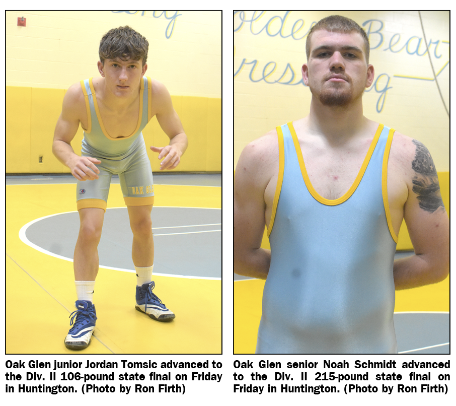 HUNTINGTON, W.Va. — Two Oak Glen wrestlers will go for state titles today in the final day of the West Virginia Div. II state wrestling tournament at Mountain Health Arena.